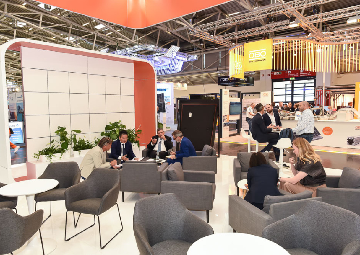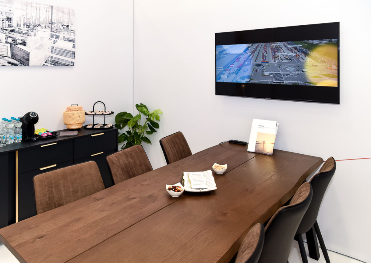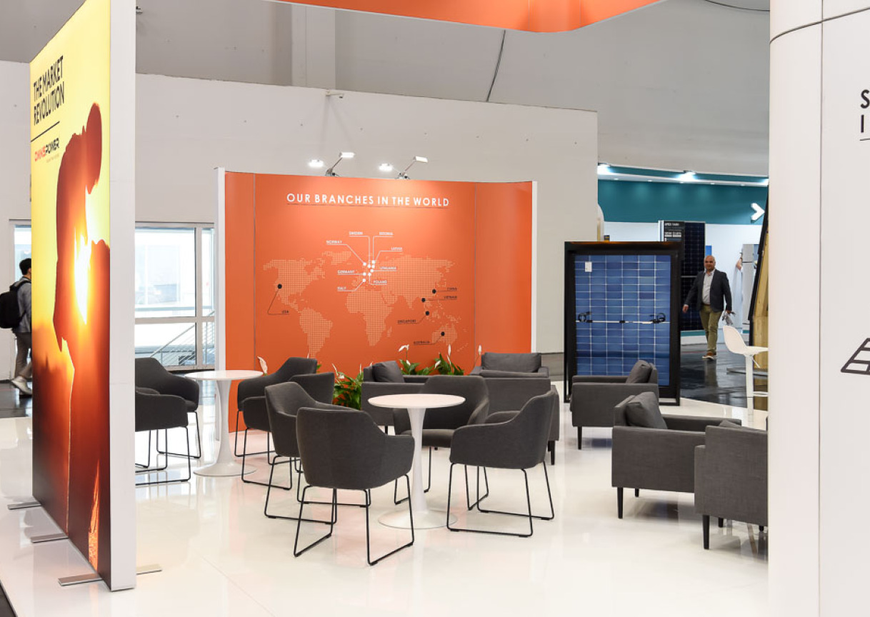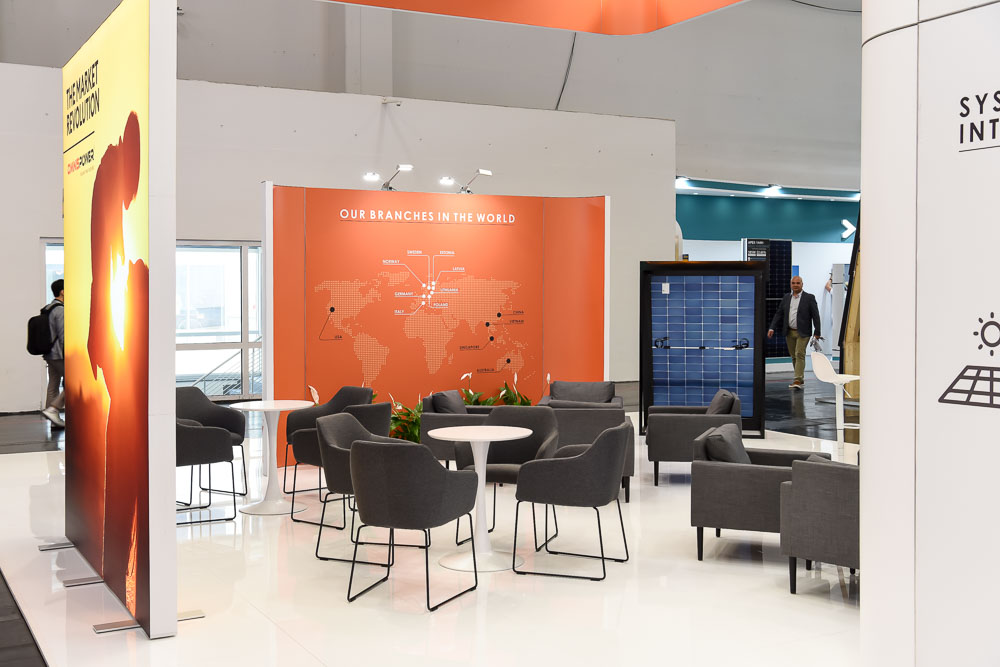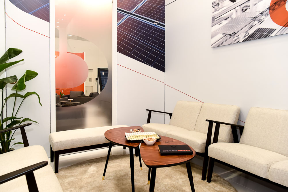 The impressive 216 square meter () stand, with a height of 4.5 meters (), was meticulously planned to fully meet Omnispower's needs. It integrated two cozy meeting rooms for confidential conversations, a convenient storage room, and a kitchenette, ensuring staff comfort.