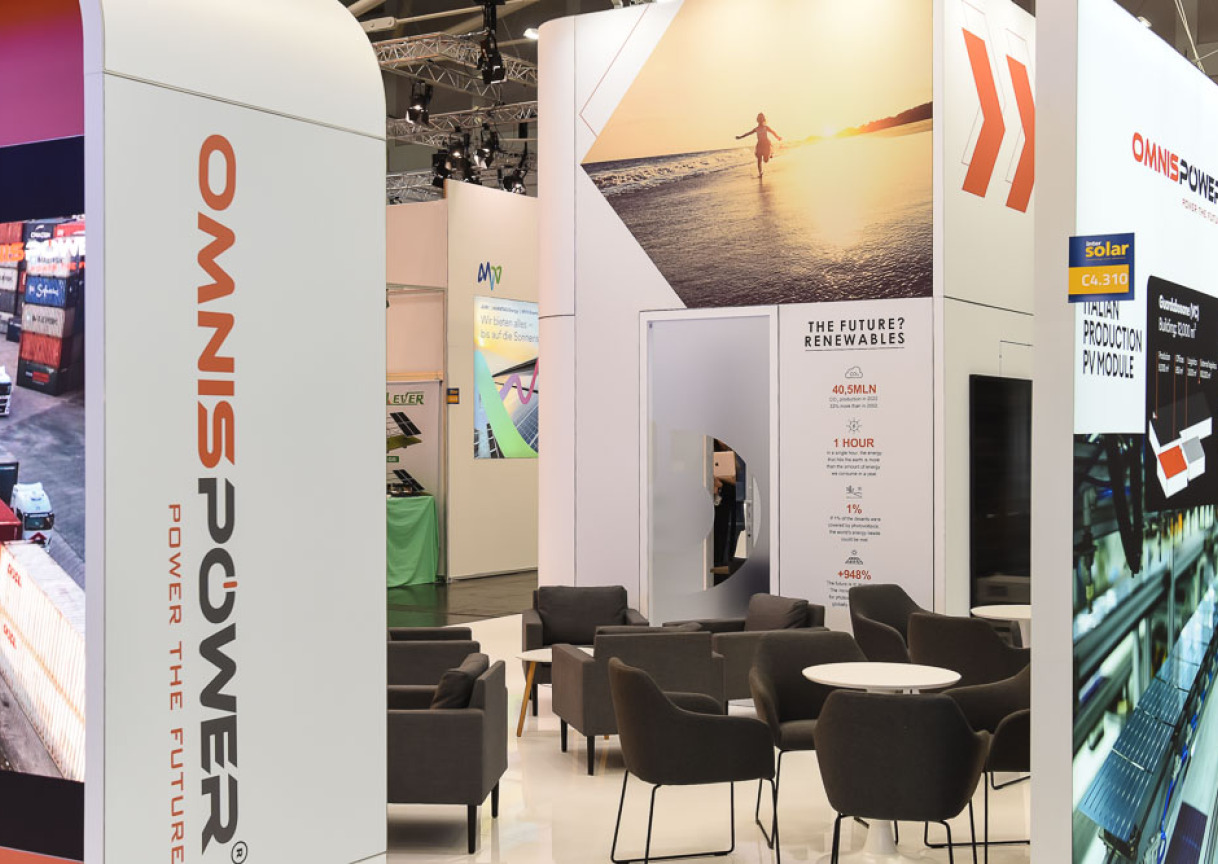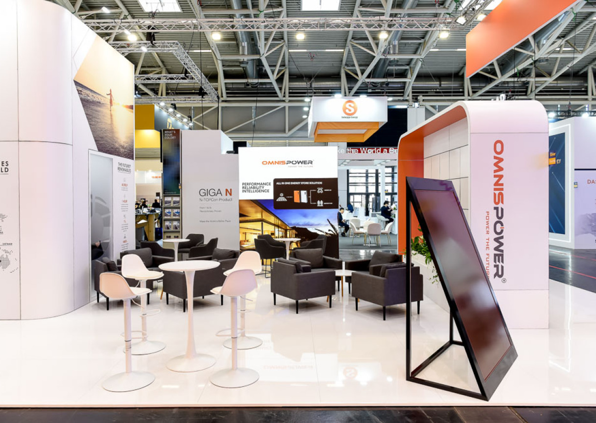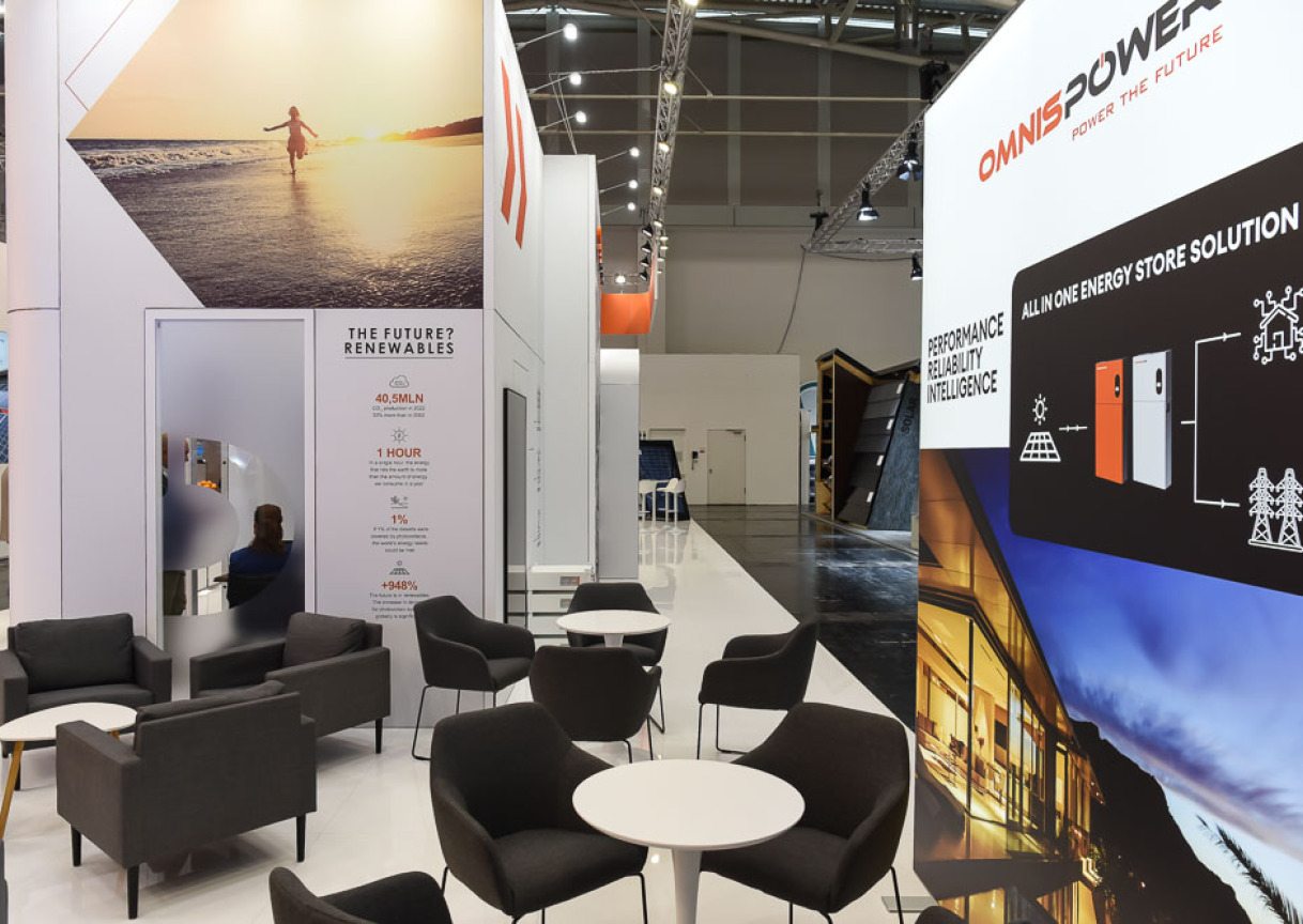We're proud to present the Omnispower exhibition stand we created and installed, which perfectly reflected the client's innovation and leadership in the solar energy sector at the Intersolar 2023 exhibition in Munich.