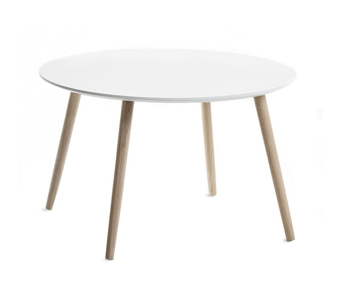 COT-08 - Baltas apvalus kavos staliukas, 75cm, 4 medinės kojos